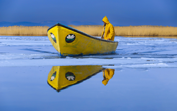 Ekim ayın kazananı Abdullah Vural, sarı yağmurluk giymiş insan figürüyle aynı renkteki teknenin donmuş sular üzerindeki yansımasını ustalıkla bir araya getiren fotoğrafıyla dikkat çekti. Renk armonisi ve kompozisyon dengesi bakımından güçlü bir uyum sergileyen bu fotoğrafta; arka plandaki altın sarısı sazlıklar ton bütünlüğünü desteklerken, mavi buz tabakaları ve yansımalar güçlü bir atmosfer oluşturuyor.
