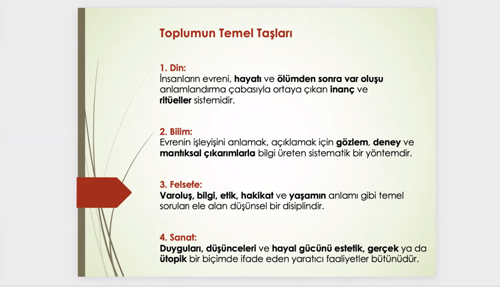 Çolak, insanlığın düşünsel evriminde din, bilim, felsefe ve sanatın birbirini tamamlayan dört temel yapı taşı olduğuna değinerek, bu unsurların tarih boyunca hem toplumun hem de bireyin dünyayı anlama biçimini şekillendirdiğini belirtti.