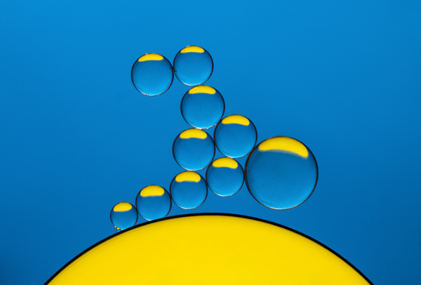 - Kompozisyon ve Renk Dengesi: Mavi arka plan üzerindeki sarı ışık kırılmaları ve damlaların kusursuz geometrik dizilimi, görsel bir denge ve derinlik sunmaktadır.