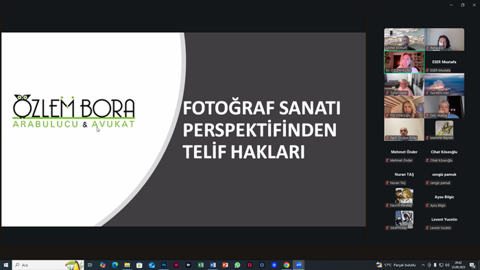 Dr. Özlem Bora, katılımcılara fotoğraf sanatçılarının üretimlerini korumak adına sahip oldukları yasal haklar ve bu hakların sınırları hakkında kapsamlı bilgiler aktardı. Telif haklarının yalnızca bir hukuki düzenleme değil, aynı zamanda sanatçının emeğine duyulan saygının bir göstergesi olduğuna dikkat çekti.
