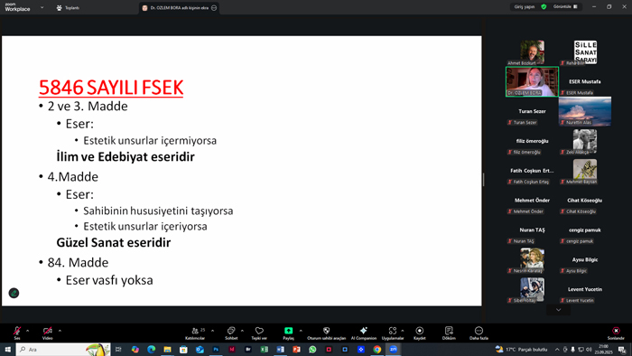 Bora, kendi meslek yaşamında karşılaştığı hukuksal deneyimlerden örnekler vererek, sanatçıların yaşadığı sorunlara ışık tuttu. Katılımcılar, gerçek hayattan örneklerle zenginleştirilen bu aktarım sayesinde, telif haklarının uygulamadaki önemini daha yakından görme fırsatı buldu.